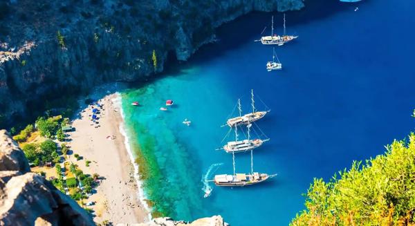 Fethiye este pentru cei care vor mai mult decât șezlong și piscină. Laguna Ölüdeniz, cu apa ei ireală între verde și albastru, figurează constant în topurile celor mai frumoase plăje din lume. Zona este perfectă și pentru paragliding de pe muntele Babadag — o experiență pe care nu o uiți. Dacă ești aventurier, traseul Lycian Way pornește chiar de aici.