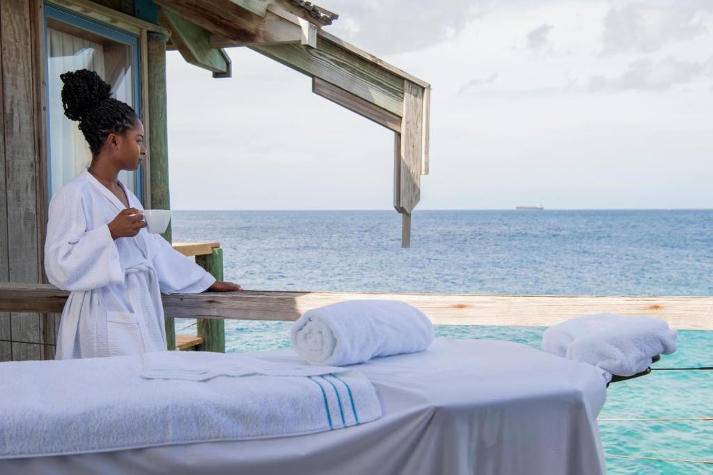 • Apartment 1- Bedroom Ocean Front – Are vedere partial sau completa spre mare. In plus, are bucatarie, 2 bai, un dormitor combinat cu living si un dormitor separat.