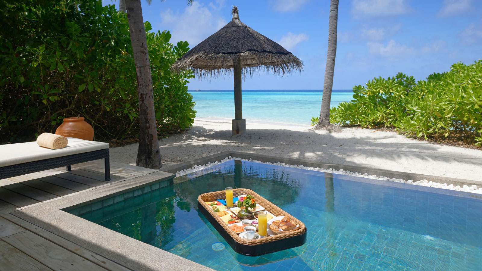• Private Pool Villa -  are vedere spre ocean si suprafata aproximativa de 121 m2. Este formata dintr-o camera.Terasa are piscina privat. Beneficiaza de aceleasi faclitati, ca si restul camerelor.