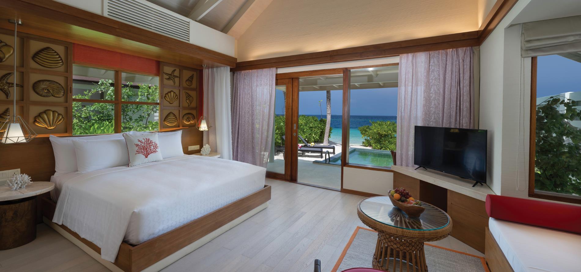 • 66 de unitati - Beach Villa – amplasate la cativa pasi de malul apei, avand o suprafata de aproximativ 47 m², baie spatioasa, dus exterior inconjurat de vegetatia unei gradinei private, veranda si dressing incapator